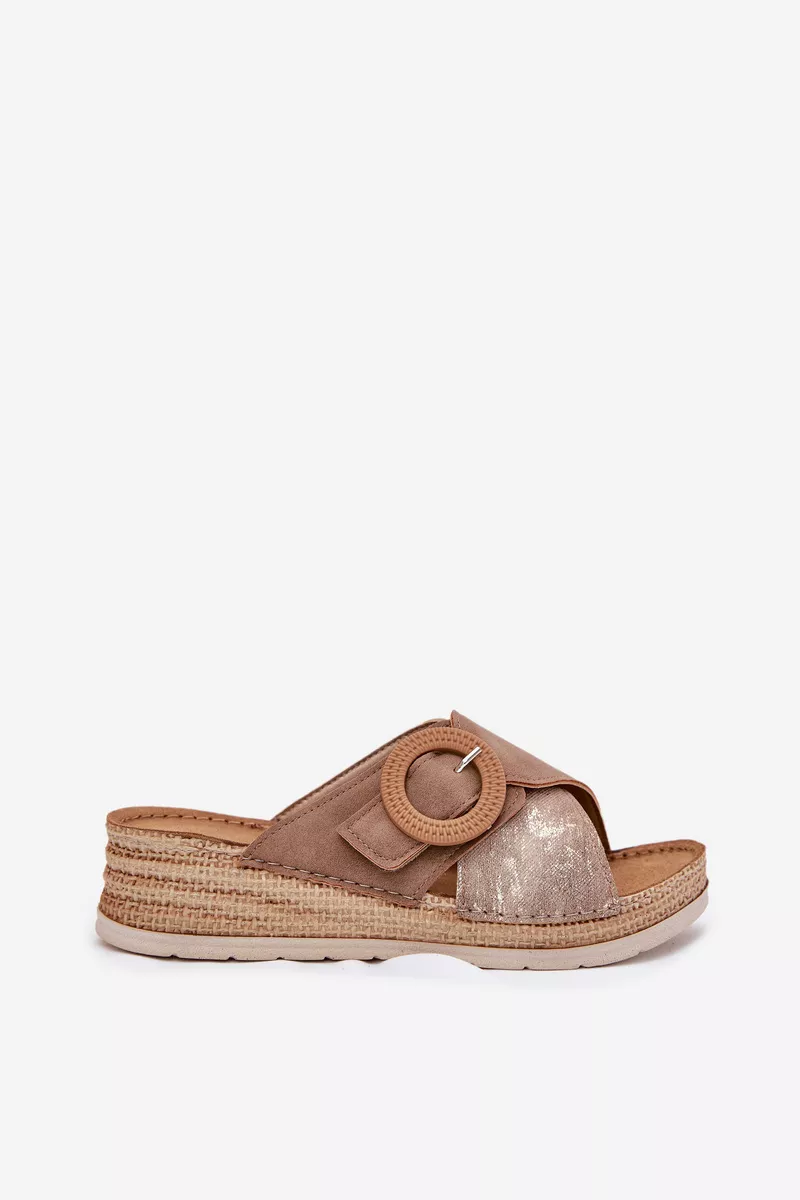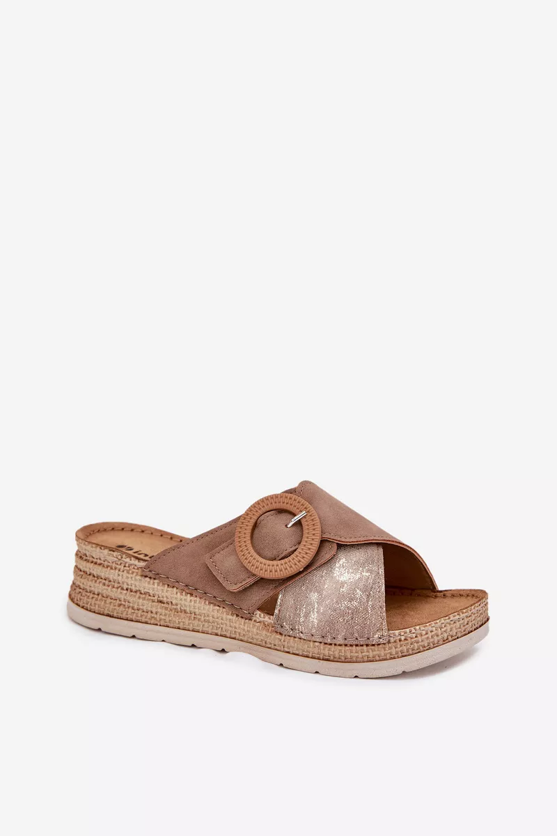 Moteriški sandalai su pleištu ir dekoratyviniu sagtimi, rudi Inblu RV000012