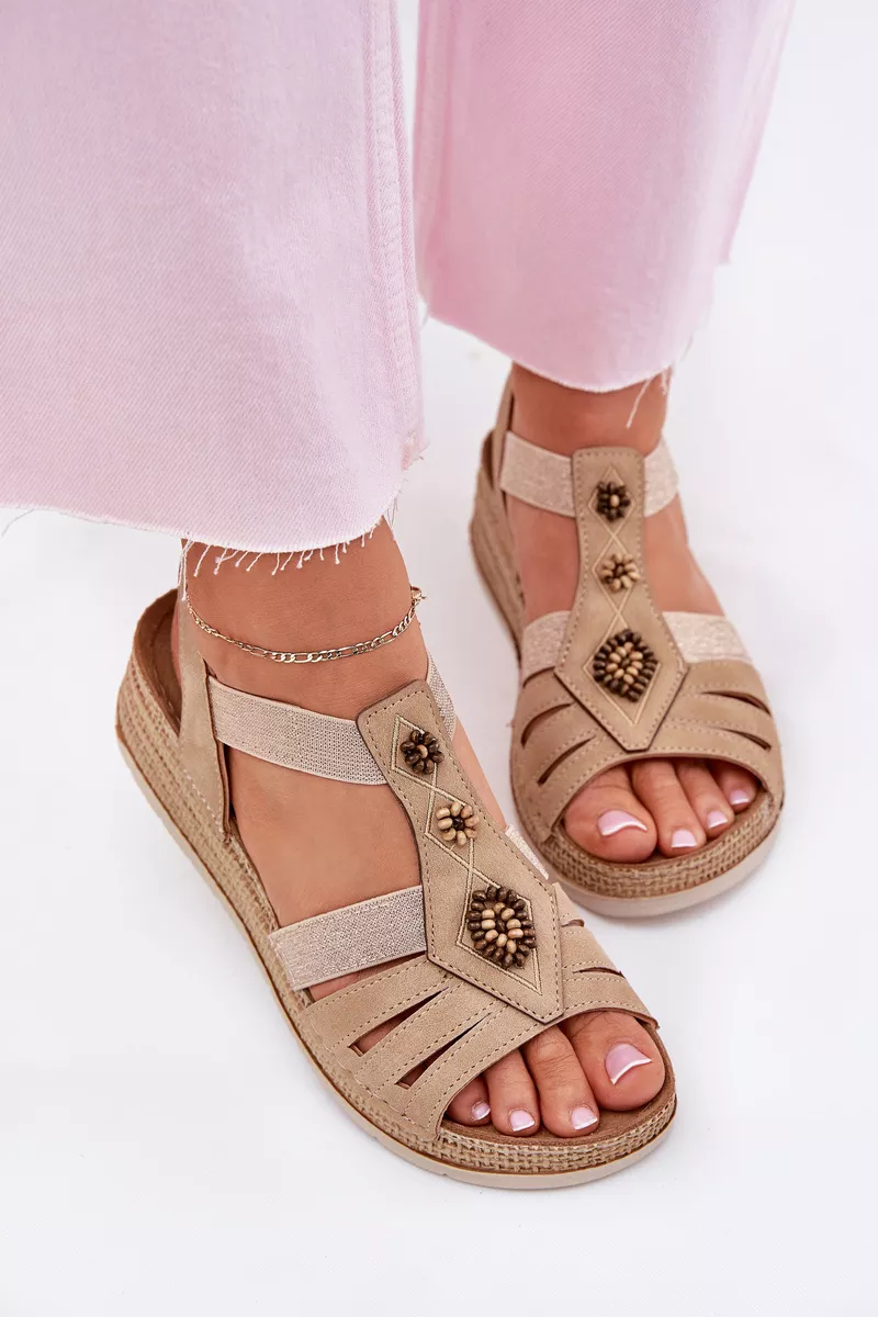 Moteriškos pleišto basutės su dekoracijomis, smėlio spalvos Inblu RV000015